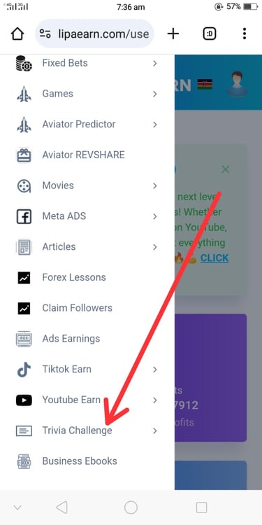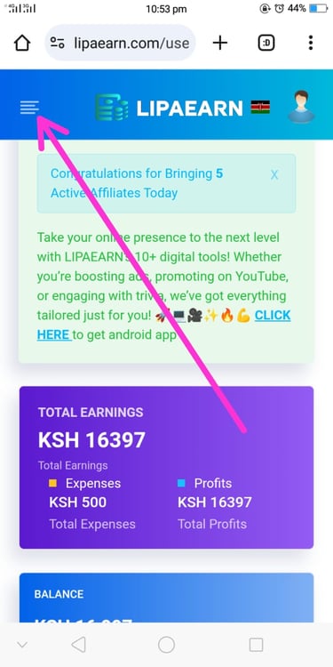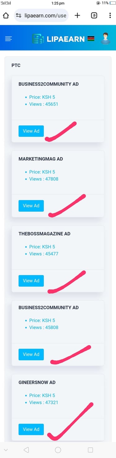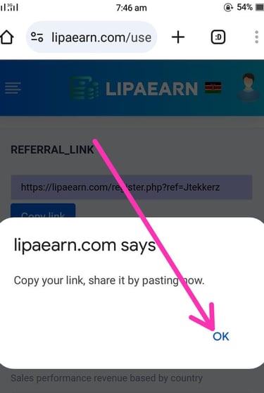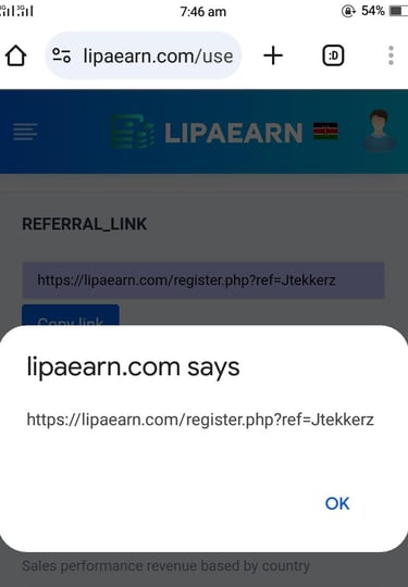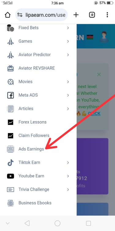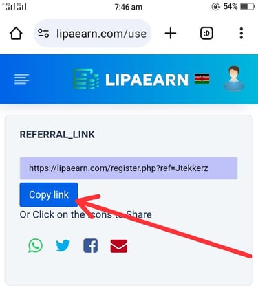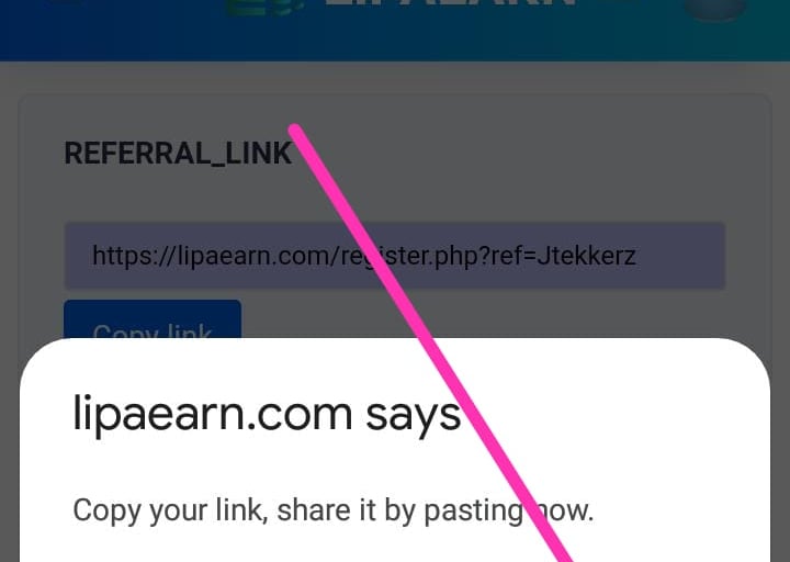Login to your Lipaearn dashboard then click here to access the features of earning