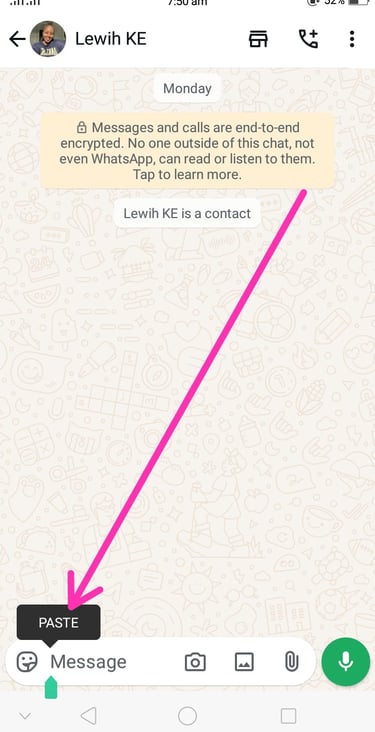 If you want to share the link to someone else, hold on message for a few seconds until the option 'paste' appears