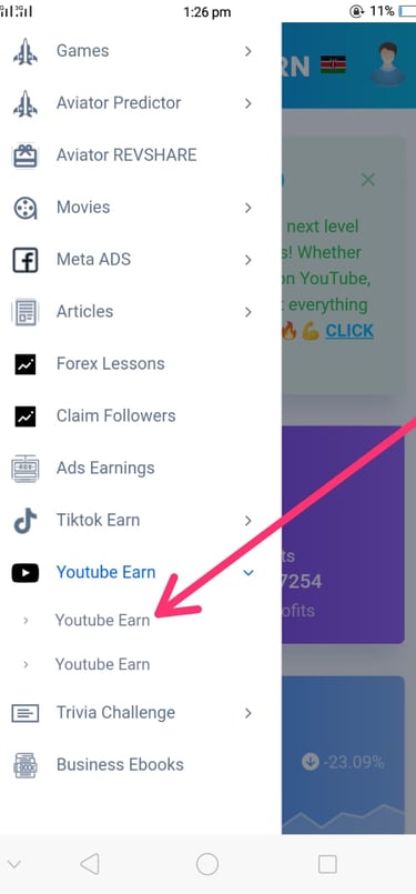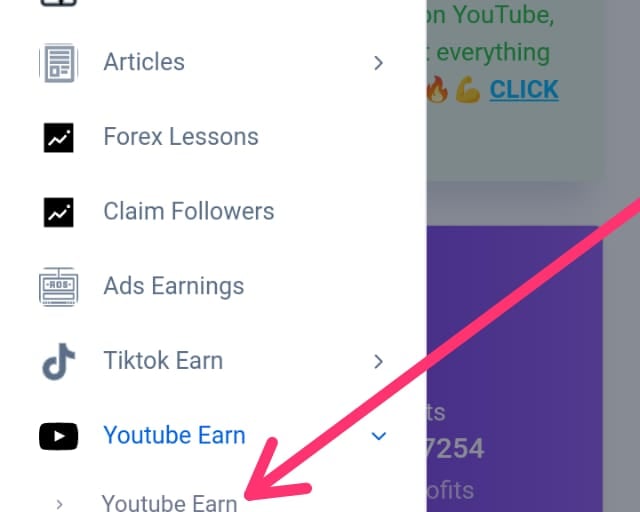 click on Youtube Earn, watch the videos until you are told to come back another day