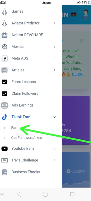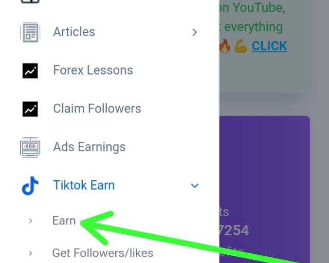 Click on Tiktok Earn, watch the videos until you are told to come back another day